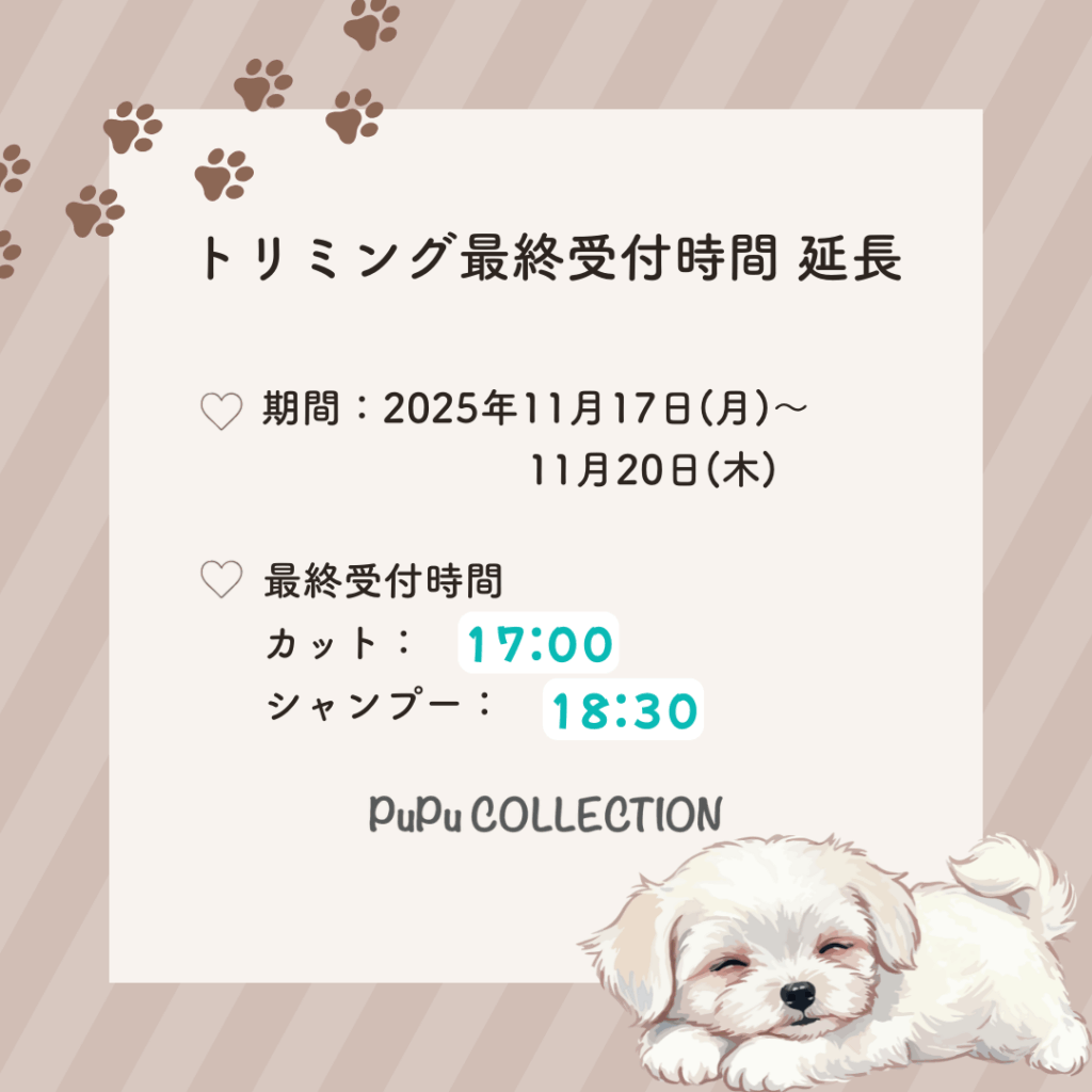 トリミング受付時間延長のお知らせ- ̗̀ 📢💭